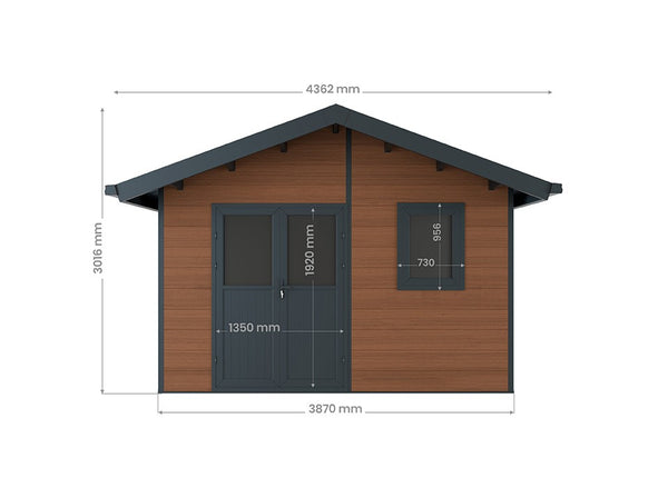 Die Türen und Fenster, aus denen dieser Verbundgartenhaus besteht, sind aus Aluminium gefertigt und mit Doppelverglasung ausgestattet.