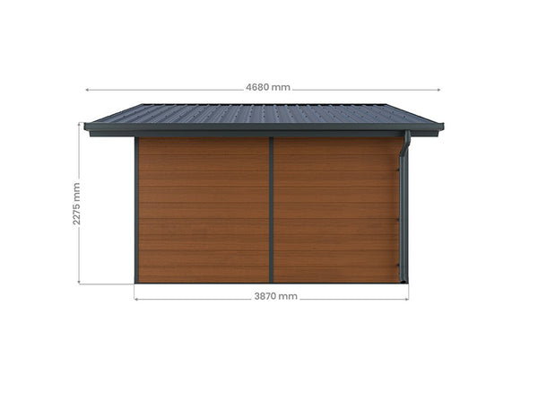 Diese Wahl garantiert Ihnen eine bemerkenswerte Haltbarkeit und einen modernen Stil, ideal für einen Gartenhaus, der Robustheit und Ästhetik erfolgreich kombiniert.