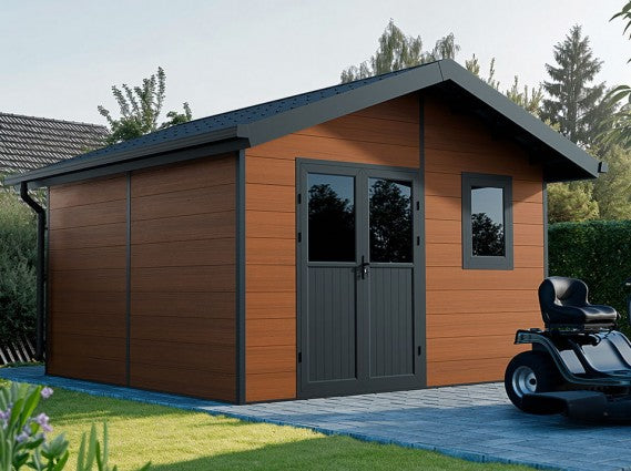 Bevorzugen Sie co-extrudiertes Verbundholz für Ihr Gartenhaus, ein Material, das dank seines Co-Extrusionsverfahrens außergewöhnliche Festigkeit bietet. Diese Technik verstärkt den Schutz vor äußeren Elementen, einschließlich UV-Strahlen und widrigen Wetterbedingungen.
