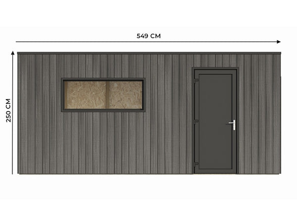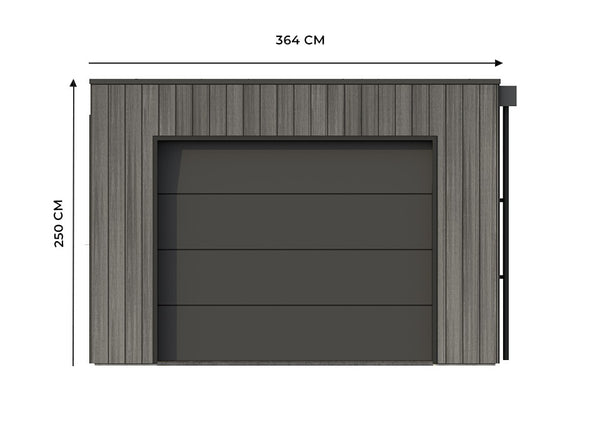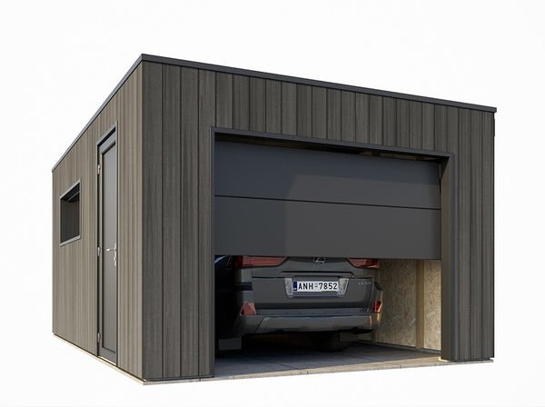 Es ist mit einer motorisierten Schnitttür, einer sicheren Servicetür und einem festen Fenster mit Doppelverglasung ausgestattet. Viel mehr als nur eine Holzgarage, dieses Produkt ist eine echte Erweiterungslösung, die für viele Jahre entwickelt wurde.
