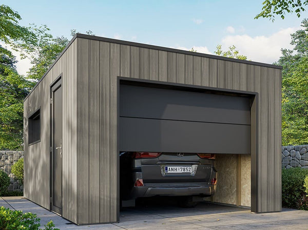 Hergestellt aus hochwertigen Materialien, ist die WEO-Verbundholzgarage nach den Regeln der Holzrahmenkonstruktionen mit einer Verkleidung aus Verbundholzverkleidungsklingen der Marke Fiberdeck® konzipiert.