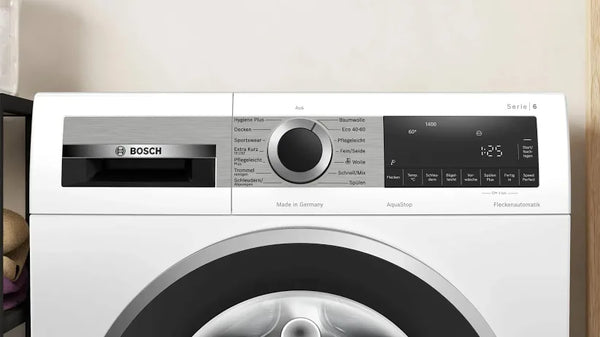 Mit der Bosch WGG244140 Waschmaschine befreist du deine Wäsche von Keimen und Pollen. Dank des Hygiene Plus Programms entfernst du unterschiedliche Allergene aus deinen Stoffen. Das Programm hält die Temperatur konstant und ein zusätzlicher Spülgang entfernt unerwünschte Bakterien. Hast du es eilig? Kein Problem. Die SpeedPerfect Funktion verkürzt die Dauer des Programms um bis zu 65 Prozent. Im Anschluss holst du frische und saubere Wäsche aus der Trommel. Aufrgrund der Energieeffizienzklasse A wäschst du besonders sparsam. Das bemerkst du auch auf deiner Stromabrechnung. Deine Fernsehserie schaust du ganz ohne Schleudergeräusche im Hintergrund. Bei einem Geräuschpegel von nur 69 Dezibel arbeitet die Bosch Waschmaschine sehr leise.