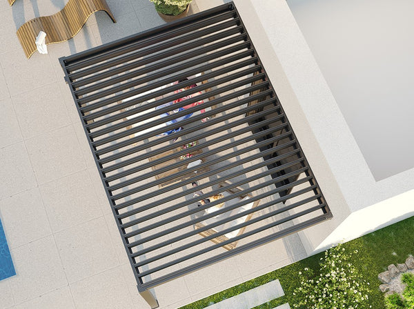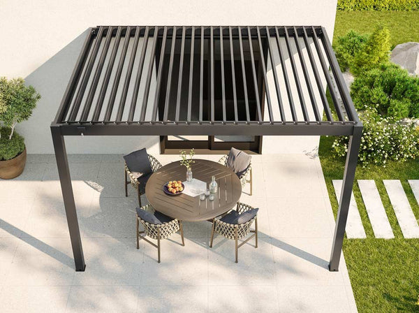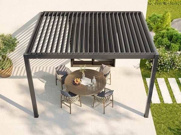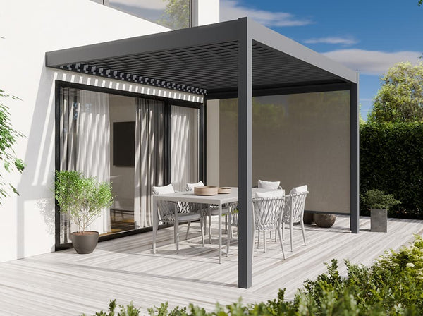 Die Flexibilität der Zenith-Bioklimapergola und ihre Seitenrollos sorgen für eine perfekte Anpassung an Ihre Terrasse oder Ihren Garten.