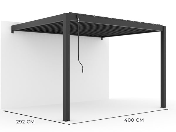 Die Zenith-gestützte bioklimatische Pergola, begleitet von ihren 3m Jalousien, ist eine elegante und praktische Lösung, um Ihren Außenbereich zu verbessern.